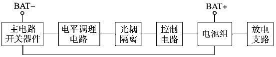 實際應用中,針對某品牌電動自行車生產廠的需求,設計實現了2組并聯、10節串聯的36V8A·h錳酸鋰動力電池組保護板,其中單節鋰電池保護芯片采用日本精工公司的S28241,保護板主要由主電路、控制電路、分流放電支路以及濾波、光耦隔離和電平調理電路等部分組成,其基本結構如圖7所示。放電支路電流選擇在800mA左右,采用510Ω電阻串并聯構成電阻網絡。