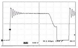 從圖中可以看出開關管在開通時,電壓非常低,有利于降低電流尖峰,關斷時,電壓尖峰小,從而電磁干擾降低。