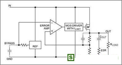 LDO的低壓差線性穩壓器的結構主要包括啟動電路、恒流源偏置單元、使能電路、調整元件、基準源、誤差放大器、反饋電阻網絡,保護電路等,基本工作原理是這樣的:系統加電,如果使能腳處于高電平時,電路開始啟動,恒流源電路給整個電路提供偏置,基準源電壓快速建立,輸出隨著輸入不斷上升,當輸出即將達到規定值時,由反饋網絡得到的輸出反饋電壓也接近于基準電壓值,此時誤差放大器將輸出反饋電壓和基準電壓之間的誤差小信號進行放大,再經調整管放大到輸出,從而形成負反饋,保證了輸出電壓穩定在規定值上;同理如果輸入電壓變化或輸出電流變化,這個閉環回路將使輸出電壓保持不變,即: