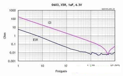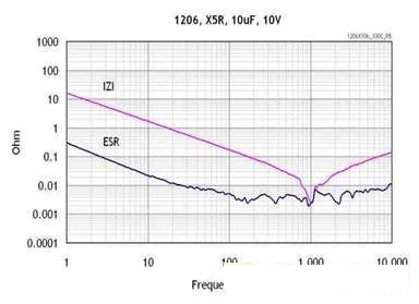 LDO需要增加外部輸入和輸出電容器。利用較低ESR的大電容器一般可以全面提高電源抑制比(PSRR)、噪聲以及瞬態性能。陶瓷電容器通常是首選,因為它們價格低而且故障模式是斷路,相比之下鉭電容器比較昂貴且其故障模式是短路。輸出電容器的等效串聯電阻(ESR)會影響其穩定性,陶瓷電容器具有較低的ESR,大概為10 mΩ量級 采用陶瓷電容時,建議使用X5R 和X7R電介質材料,這是因為它們具有較好的溫度穩定性。圖為X5R的ESR和頻率曲線。