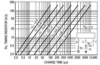 直流電源s V 從腳15 接入后分兩路,一路加到或非門;另一路送到基準電壓穩壓器的輸入端,產生穩定的+5V 基準電壓。+5V 再送到內部(或外部)電路的其它元器件作為電源。振蕩器腳5 須外接電容T G 腳6 須外接電阻RT。振蕩器頻率f 由外接電阻 RT 和電容 CT 決定, f = 1.18/RT CT 。可以根據廠家的一個圖查出。如圖5: