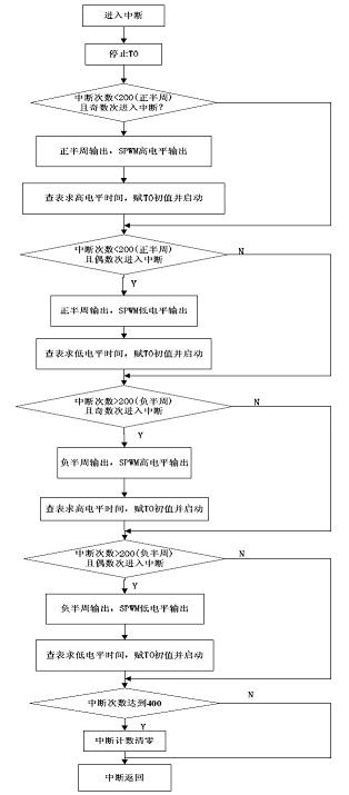 本設計采用定時/計數器0 來完成SPWM 波形的產生,工作模式設定為模式1。軟件流程圖如圖8所示。