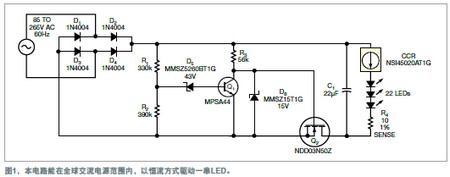 經(jīng)濟(jì)而耐用的簡單混合式電路可用于建筑與室內(nèi)照明用具。這些電路設(shè)計的效率可能低于復(fù)雜的開關(guān)穩(wěn)壓器,但它們有低成本和簡單的優(yōu)勢,因此具有吸引力。這些電路可用于50Hz或60Hz的85V~265V所有交流電壓。