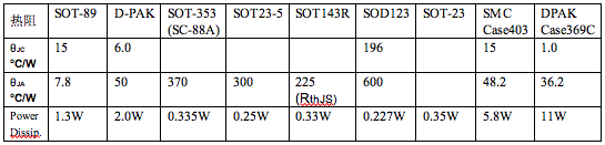 由表中可見,On-semi公司的NSI50350ADT4G所采用的D-PAK具有最小的熱阻,其耗散功率高達11W。不過如果整個系統(tǒng)設計于這樣高的耗散功率也說明其效率不高,是需要避免的。