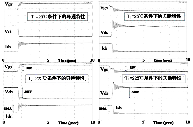 (測(cè)量條件: Ids=100A、Vds=300V、負(fù)載:L=200uH、Rg=3.2Ω、Rgs=15kΩ)