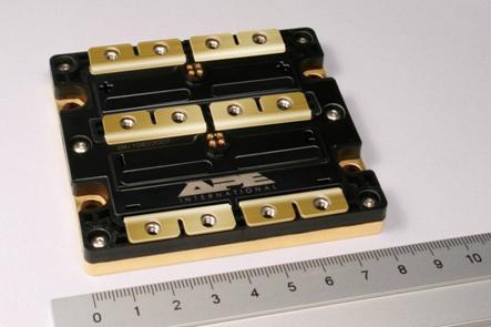 之前羅姆開發(fā)的超低電阻(約2mΩ?cm2)SiC溝槽MOSFET可通過(guò)單片承受100A級(jí)的電流。而此次,羅姆進(jìn)一步成功的降低了MOSFET的門極電容,開關(guān)速度與現(xiàn)有的SiC-DMOS相比可提高50%,與羅姆以往的SiC溝槽MOS相比也提高了30%。但是,傳統(tǒng)的模塊,為了元器件的散熱,確保元器件的工作溫度,需要加大模塊面積,因此往往導(dǎo)致模塊的寄生電感增大。因此,即使搭載SiC溝槽MOS,由于模塊本身的限制也無(wú)法有效發(fā)揮其特點(diǎn)。而此次APEI開發(fā)出了通過(guò)將模塊的面積小型化、進(jìn)一步優(yōu)化布局、大幅降低了寄生電感的模塊。另外,這種模塊上搭載溝槽MOS可承受1000A級(jí)水平的大電流,與傳統(tǒng)的Si-IGBT模塊相比,可以減少一半導(dǎo)通電阻。此外,實(shí)現(xiàn)了開關(guān)時(shí)間僅需數(shù)十納秒的超高速工作,與Si-IGBT相比成功將開關(guān)損耗降低到了1/3。不僅如此,由于所使用的材料變更為高性能材料,因此模塊的面積減少到30%,并同時(shí)實(shí)現(xiàn)了Si-IGBT不可能實(shí)現(xiàn)的高溫(250℃)驅(qū)動(dòng)。而且,根據(jù)端子的連接方法,可按半橋、全橋、串聯(lián)進(jìn)行選用。另外,還能搭載羅姆開發(fā)的所有的SiC器件,可進(jìn)行滿足客戶規(guī)格要求的設(shè)計(jì)。
