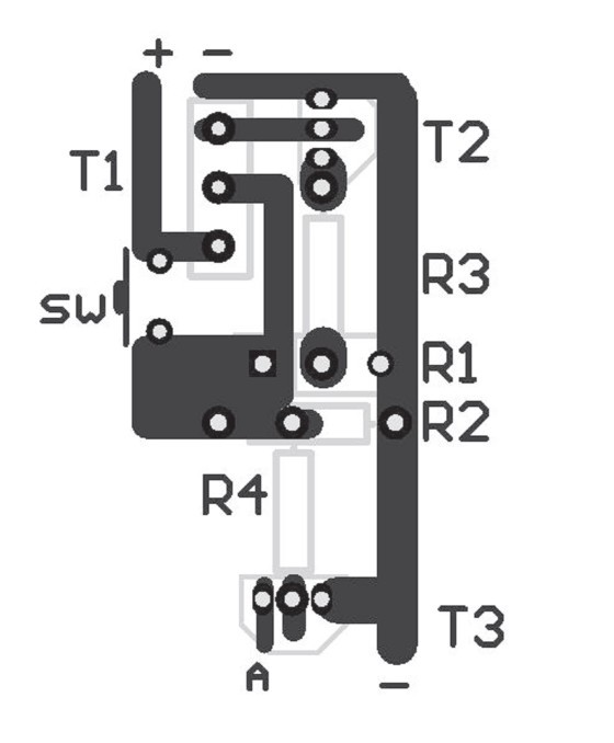圖2是放電電路的印刷電路圖,元件數(shù)量少,很容易制作。