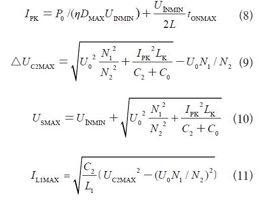 根據如下公式,可出計算出二極管VD0所承受的電壓應力UDO、電流應力ISK: