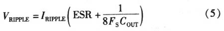 輸出電容器(CONT)的選擇受最大允許輸出電壓波紋影響。輸出電壓波紋在固定頻率脈寬調制模式下近似值為: