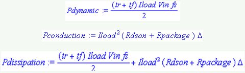 其中:tr和tf =上升和下降時(shí)間;Vin =輸入電壓;ILoad =負(fù)載電流;Fs =開(kāi)關(guān)頻率;RDS(ON) = MOSFET導(dǎo)通電阻;ΔPWM = 占空周期;Rpackage =封裝阻抗;