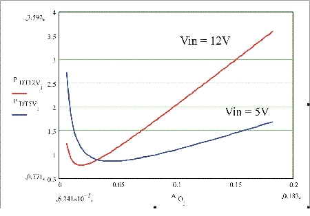 如圖5所示,功耗是裸片面積的函數(shù),周?chē)轻槍?duì)輸入電壓為5到12V的頂部MOSFET的最合適值。這清楚地表面,損耗高度依賴于裸片面積以及如果裸片面積增加或減少時(shí)這些損耗所增加或減小的劇烈程度。