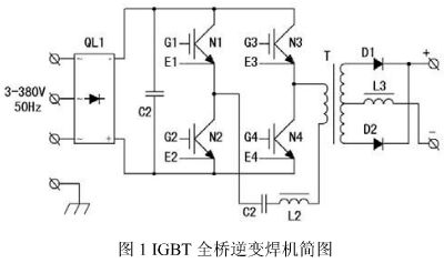 圖 1 是全橋 IGBT 逆變焊機(jī)主電路簡圖,由圖 1 可見,三相 380V電源進(jìn)入焊機(jī)首先要經(jīng)過三相整流橋QL1 整流和 C2 濾波,濾波電容器的等效容量一般在 50~1000µf 之間,在采用大電容器濾波的整流濾波電路中,整流二極管導(dǎo)通時間較短,濾波電容充電電流瞬時峰值大,電流波形為近似尖脈沖,使 50Hz 正弦電流波形發(fā)生畸變,產(chǎn)生諧波電流。