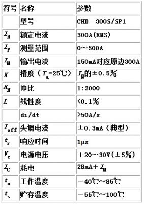 閉環霍爾電流傳感器的應用范圍很廣,目前已成功地應用于逆變焊機,發電及輸變電設備,電氣傳動,數控機床等工業產品上。表1以額定電流為300A的CHB-300S型霍爾電流傳感器為例,說明這種傳感器的應用。