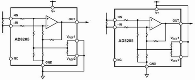 圖1 高側電流傳感器AD8205內部電路原理圖