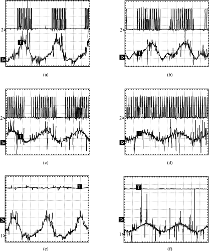 圖3(a)(b)(c)(d)示出了不同L、C參數時直流電源的控制脈沖和輸出電流。其中(a)為沒有LC濾波電路時的實驗波形,(b)的濾波參數為L=2mH、C=1100μF,(c)的濾波參數為L=2mH、C=2200μF,(d)的波波參數為L=2mH、C=3300μF。由圖可見,當逆變器輸入側不加LC濾波器時,直流電源輸出電流大范圍波動,造成控制脈沖時有時無。其結果是系統噪聲變大,整機效率下降,可靠性降低。隨著LC濾波參數的加大,逆變器輸入電流的波動逐漸減小,控制脈沖逐漸變得連續,系統噪音變小,效率變高。為了保證逆變器輸入電壓的穩定,濾波電感不宜加的太大,增大濾波參數適宜加大濾波電容。