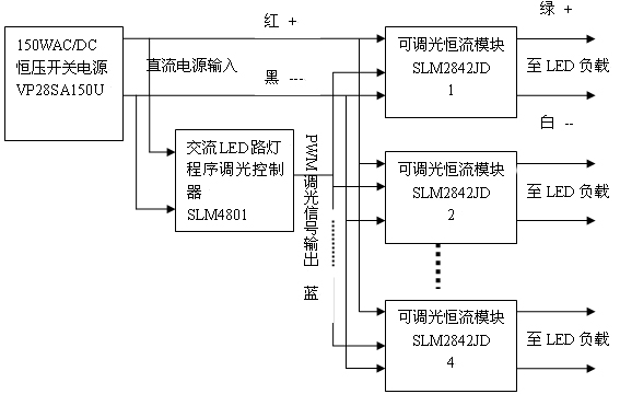 而且這種恒壓和恒流分開的方案的最大優(yōu)點是可以插入程序調(diào)光系統(tǒng)。這樣可以進一步節(jié)約電能40%以上,這是任何直接恒流輸出方案所無法實現(xiàn)的。