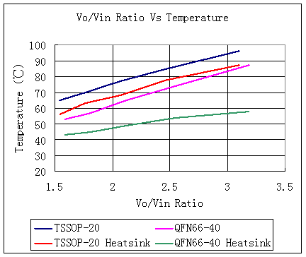 從圖中可以看出,芯片封裝也是很重要的,采用QFN的芯片封裝顯然好于采用TSSOP的芯片封裝,因為它的熱阻要低很多。所以在購買模塊時也要了解所采用芯片的封裝(盡可能采用QFN封裝的,盡量不要采用TSSOP封裝的)。