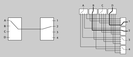 一系列復(fù)雜的開(kāi)關(guān)拓?fù)湓赗F開(kāi)關(guān)中得以采用。矩陣式開(kāi)關(guān)可以實(shí)現(xiàn)每個(gè)輸入與每個(gè)輸出的連接。有兩種類(lèi)型的矩陣在微波開(kāi)關(guān)架構(gòu)中得以采用—— blocking和non-blocking架構(gòu)。一個(gè)blocking矩陣可將任意一個(gè)輸入和任意一個(gè)輸出進(jìn)行連接,因此其他的輸入和輸出就不能同時(shí)連接。這對(duì)只需在一個(gè)時(shí)刻切換到一個(gè)信號(hào)頻率的應(yīng)用是一個(gè)有效的低成本方案,信號(hào)完整性也更好,因?yàn)橛懈俚睦^電器路徑,特別是避免了相位延遲的問(wèn)題。而 non-blocking矩陣允許多個(gè)路徑的同時(shí)連接,這種架構(gòu)具有更多的繼電器和線(xiàn)纜,因此靈活性更強(qiáng),不過(guò)價(jià)格也更高。