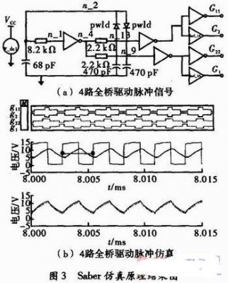 4路PWM生成電路的Saber仿真原理圖及仿真結果如圖3(a)和圖3(b)所示。由仿真結果可以看出,4路PWM脈沖能夠滿足共用全橋拓撲的控制要求。