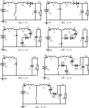 圖2新型無源無損軟開關Boost變換器的工作模態