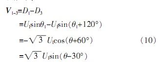 由于自整角機中定子繞組為星型連接,彼此在空間上呈120°,并且輸出三路定子繞組電壓D1、D2、D3是相對于中心點而言,無法對其單獨處理。由公式(5)可知,其任意兩線間電壓為: