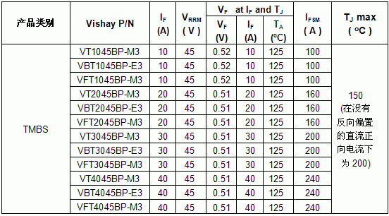 今天發布的產品包括單芯片V(B,F)T1045BP、V(B,F)T2045BP、V(B,F)T3045BP和V(B,F)T4045BP。每款器件均提供功率TO-220AC、ITO-220AC和TO-263AB封裝。