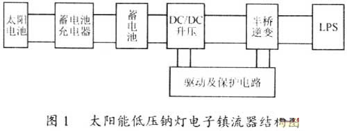 太陽能作為綠色能源將是國家大力推廣的節(jié)能項目,而低壓鈉燈是照明工程節(jié)能改造及太陽能照明系統(tǒng)的最佳光源,它以其高光效200lm/W及長壽命,視見分辨率高,對比度好,不受環(huán)境溫度影響的優(yōu)點而被廣泛應用于道路、高架橋、隧道和交叉路口等能見度高和顯色性要求不高的地方。低壓鈉燈還具有不眩目,不會因環(huán)境氣體的蝕化作用而產(chǎn)生燈具光學系統(tǒng)過早損壞的現(xiàn)象。過去低壓鈉燈使用的是傳統(tǒng)自耦漏磁電感鎮(zhèn)流器,因自身體積大、重量高,自身損耗大(18%),在工頻供電的條件下,有明顯的頻閃效應,從而影響了低壓鈉燈的光放提高,且其輸出功率隨供電電壓的波動變化較大,嚴重影響燈管的工作壽命,能耗特高等缺點,嚴重制約了低壓鈉燈的廣泛應用。研制高效、環(huán)保、體積小、長壽命、性價比高的太陽能低壓鈉燈電子鎮(zhèn)流器已成為大勢所趨。與所有的鎮(zhèn)流器一樣,低壓鈉燈呈現(xiàn)負阻特性。