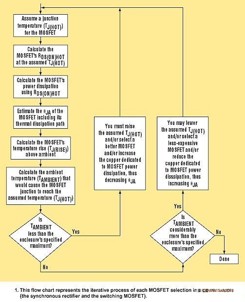 這一過程從首先假設(shè)各MOSFET的結(jié)溫開始,同樣的過程對于每個MOSFET單獨進行。MOSFET的功率耗散和允許的環(huán)境溫度都要計算。