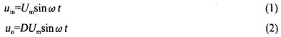 其中Um為輸入電壓幅值;w=2pf,為輸入電壓角頻率;f為輸入電壓頻率。占空比D為常數(shù),故輸出電壓uo也是正弦變化,其相位和輸入電壓uin一致,但幅值不大于Um。