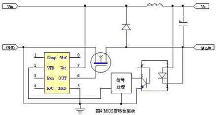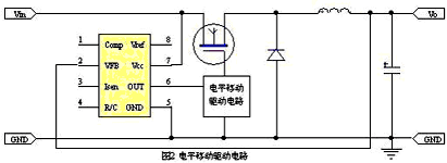 當主電路的供電電壓不太高時,可插入圖二所示的電平轉換驅動電路。這種方法的優點是成本較低,缺點一是當輸入電壓Vin較高時不易處理好;二是電平移動驅動部分需要電荷泵供電,因此電路比較繁復。