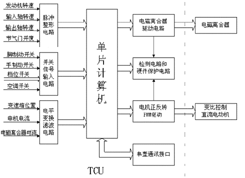 通訊接口的作用主要是觀測TCU的工作狀態,對檢測傳感器的故障分析以及傳感器資源的共享。