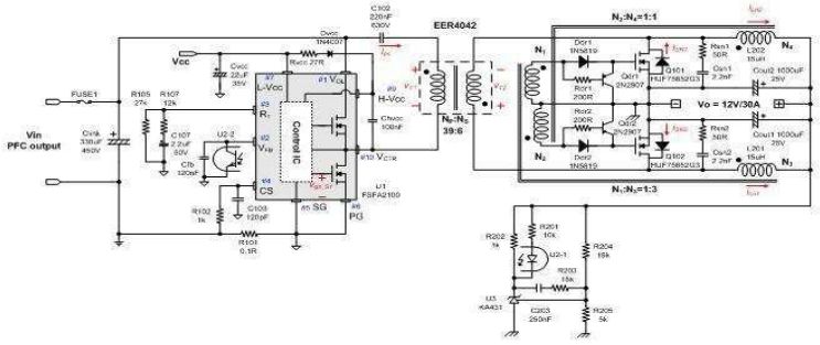 圖3 360 W PC電源的設(shè)計(jì)示例 (12 V, 30 A)