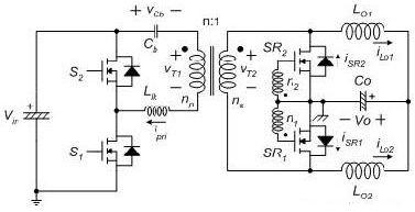 圖1 使用電流倍增器的非對(duì)稱PWM半橋轉(zhuǎn)換器