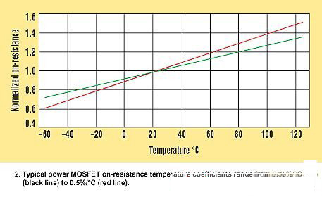 對于開關MOSFET和同步整流器兩者,都是選擇作為此迭代過程開始點的最大允許裸片結溫(TJ(HOT))。大多數MOSFET數據參數頁只給出25°C的最大RDS(ON),,但近來有一些也提供了125°C的最大值。MOSFETRDS(ON)隨著溫度而提高,通常溫度系數在0.35%/°C至0.5%/°C的范圍內(圖2)。如果對此有所懷疑,可以采用更悲觀的溫度系數和MOSFET在25°C規格參數(或125°C的規格參數,如果有提供的話)計算所選擇的TJ(HOT)處的最大RDS(ON):RDS(ON)HOT=RDS(ON)SPEC×[1+0.005×(TJ(HOT)?TSPEC)]