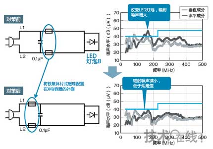 圖11:LED燈泡的輻射噪聲對策示例