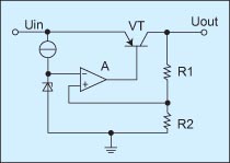 取樣電壓加在比較器A的同相輸入端,與加在反相輸入端的基準電壓Uref相比較,兩者的差值經(jīng)放大器A放大后,控制串聯(lián)調(diào)整管的壓降,從而穩(wěn)定輸出電壓。當(dāng)輸出電壓Uout降低時,基準電壓與取樣電壓的差值增加,比較放大器輸出的驅(qū)動電流增加,串聯(lián)調(diào)整管壓降減小,從而使輸出電壓升高。相反,若輸出電壓Uout超過所需要的設(shè)定值,比較放大器輸出的前驅(qū)動電流減小,從而使輸出電壓降低。供電過程中,輸出電壓校正連續(xù)進行,調(diào)整時間只受比較放大器和輸出晶體管回路反應(yīng)速度的限制。