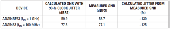 表 5 90-fs 時鐘抖動和 RF 放大器的 SNR 結果
