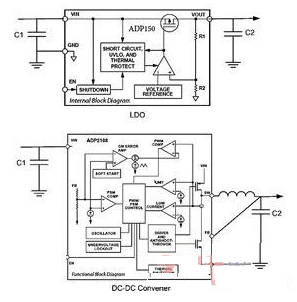 圖2 LDO和降壓轉換器的功能框圖