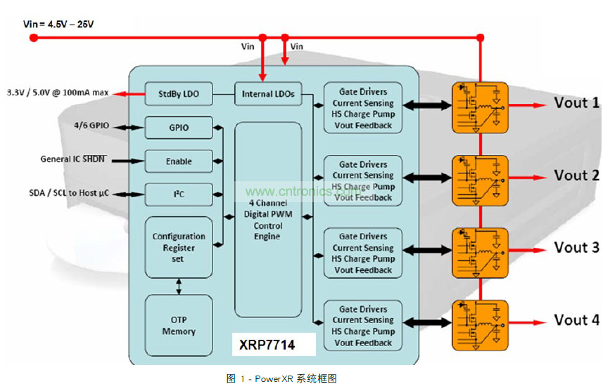 過去可以使用模擬電路或 FPGA 完成相移同步時鐘。 很遺憾,這會增加額外的組件、成本和開發(fā)工作。令人欣慰的是,當(dāng)今市場上有多個數(shù)字 PWM 控制器集成了同步和相移。在本文中,Exar 的 PowerXR 技術(shù)展現(xiàn)了相移的優(yōu)點(diǎn),如圖 1 所示。