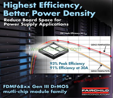 當(dāng)能效標(biāo)準(zhǔn)逐漸成為電子產(chǎn)品新的緊箍咒,各大電源半導(dǎo)體廠商不得不面對(duì)電源管理技術(shù)的全新挑戰(zhàn)。飛兆半導(dǎo)體 FDMF68xx Gen III DrMOS多芯片模塊(MCM)系列經(jīng)設(shè)計(jì)能夠降低輸出感量和減少輸出電容器數(shù)目,與普通分立器件解決方案相比,該系列能夠節(jié)省多達(dá)50%的線(xiàn)路板空間,并提高效率,以期滿(mǎn)足新能源標(biāo)準(zhǔn)要求。使用飛兆半導(dǎo)體的高性能PowerTrench® MOSFET技術(shù),F(xiàn)DMF68xx系列能夠顯著減少開(kāi)關(guān)振鈴(switch ringing),省去大多數(shù)降壓轉(zhuǎn)換器應(yīng)用中使用的緩沖器電路。FDMF68xx系列配合針對(duì)刀片式服務(wù)器、高性能筆記本電腦、游戲主機(jī)和負(fù)載點(diǎn)(point-of-load)模塊的新能源標(biāo)準(zhǔn)和系統(tǒng)規(guī)范,正在推動(dòng)業(yè)界對(duì)更高效率、更大電流、更高開(kāi)關(guān)頻率以及更大功率密度的需求。