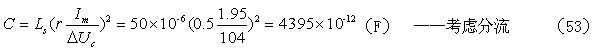 當(dāng)考慮電阻R對(duì)電容器C充電的分流作用,以及開關(guān)管由導(dǎo)通到完全關(guān)斷期間,漏極電流對(duì)電容器C充電的分流作用時(shí),根據(jù)(36)式,假設(shè)分流系數(shù)r = 0.5 ,則(52)式還可改寫為: