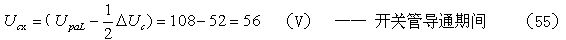 這里順便說明一下,為什么(53)式中的分流系數(shù)取值為0.5,而不是其它數(shù)值。因?yàn)椋至飨禂?shù)r的取值范圍是0~1,它是一個(gè)動(dòng)態(tài)系數(shù),它的大小,除了與輸入電壓和輸出功率和RCD電路中電容、電阻的大小有關(guān)外,還與開關(guān)管的關(guān)斷時(shí)間,以及電流大小有關(guān)系。