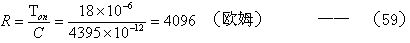 把由(52)和(53)式求出電容器C的結(jié)果,以及根據(jù)(25)式求出的Ton值,代入(57)式后即可求出電阻R的值。