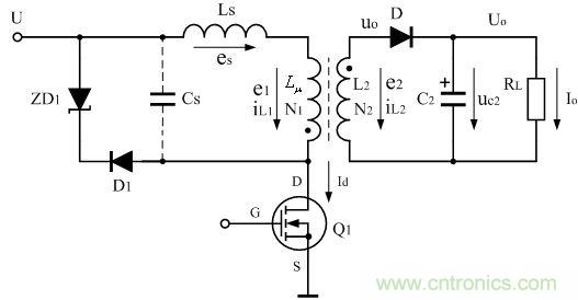 試驗(yàn)時(shí),以輸入電壓和輸出功率的最大值為條件,然后,由大到小,選擇不同容量的電容器做試驗(yàn),用示波器觀測(cè)電源開關(guān)管D-S兩端的電壓,直到Uds與最高耐壓BVm兩者之差能滿足余量要求時(shí),為最佳結(jié)果。