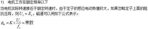 標量控制是指對只對交流異步電機的輸入電壓和輸入頻率進行幅值的控制,不考慮電機中各物理量之間的相互耦合效應。這里以標量控制中典型的U/F方式為例介紹其工作原理。