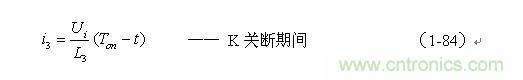 根據圖1-17,加到開關器件(控制開關)兩端的峰值電壓UKP正好等于輸入電壓Ui與反電動勢峰值Up-之和,即: