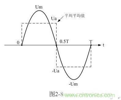順便說明,這里的半周平均值,并不是一般意義上的正、負(fù)半周波形完全對稱交流電壓正半周、或負(fù)半周的平均值,這里的半周平均值是泛指整個周期中的正半波電壓或負(fù)半波電壓在半個周時間內(nèi)的平均值。如圖2-9所示。另外,(2-19)、(2-20)式中的半周平均值Ua和Ua-與第一章中(1-70)、(1-71)式定義的半波平均值Upa和Upa-也稍有一點(diǎn)差別,Ua和Ua-與Upa和Upa-的差別,主要是在分母上。