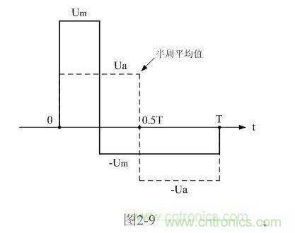 這種計算方法,對于非正弦波同樣有效。圖2-9是一個正、負(fù)脈沖幅度以及脈沖寬度均不相等的交流脈沖波形,我們同樣可以用分別計算它們正、負(fù)半周平均值Ua、-Ua的方法,然后用平均值Ua替代(2-17)或(2-18)式中的矩形脈沖幅度E 。