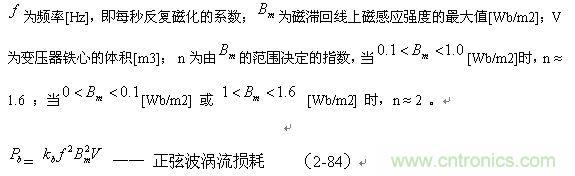 (2-84)式中, Pb為輸入電壓為正弦波時變壓器鐵芯的磁滯損耗[W];Kb為與鐵磁物質電阻率、截面積、體積、形狀有關的系數(由試驗決定);
