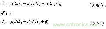 (2-91)式中,咋看起來(lái),變壓器初級(jí)線圈N1產(chǎn)生的磁通量 全部穿過(guò)變壓器次級(jí)線圈N2,它們之間應(yīng)該不存在漏磁通;但是,初級(jí)線圈在面積S1中產(chǎn)生的磁通